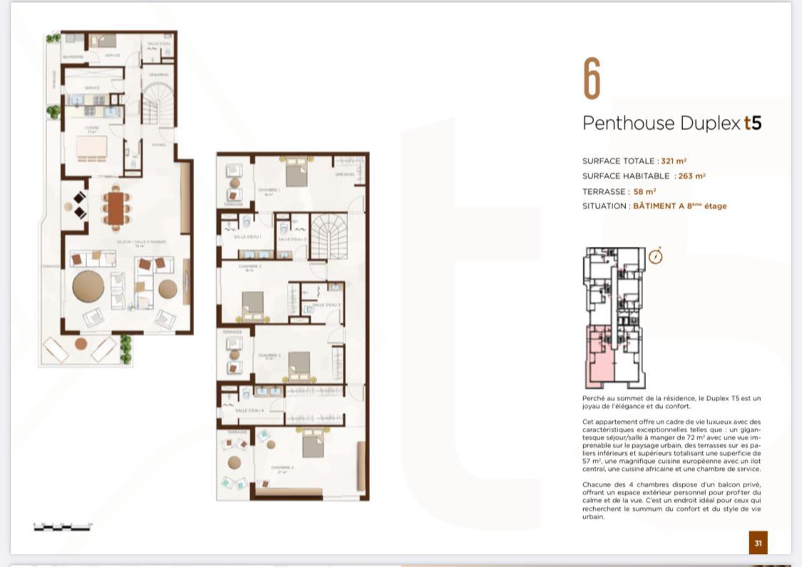 – Penthouse duplex 5 pièces